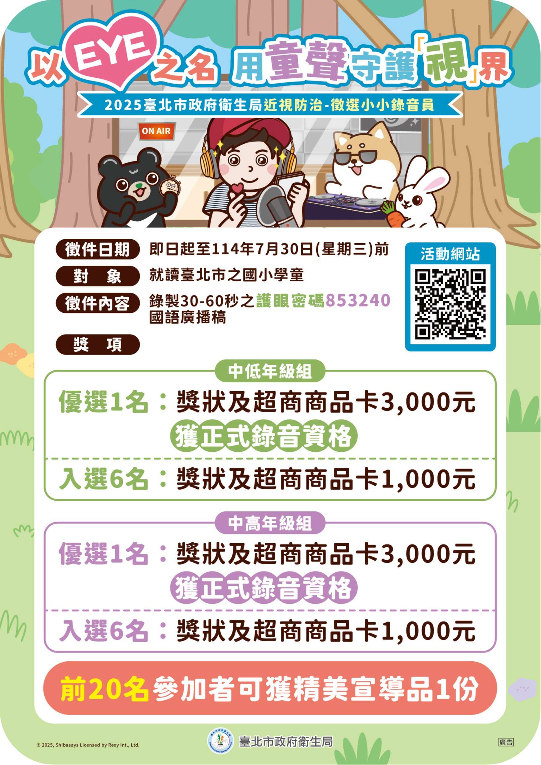 主旨:台北市衛生局辦理「114年度以『Eye』之名 用童聲守護『視』