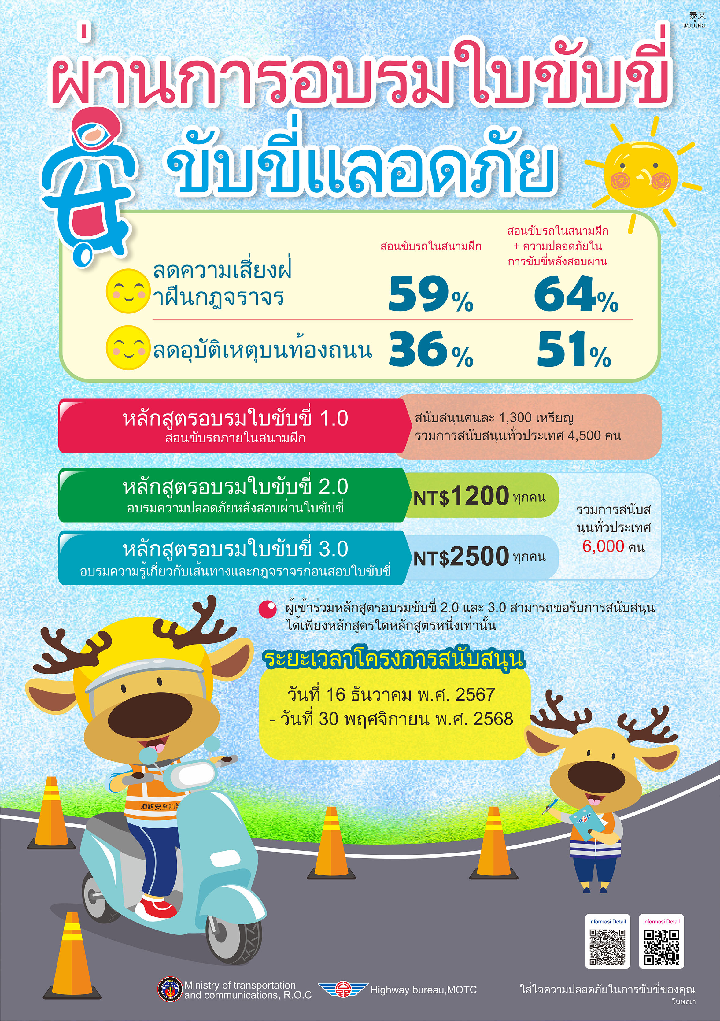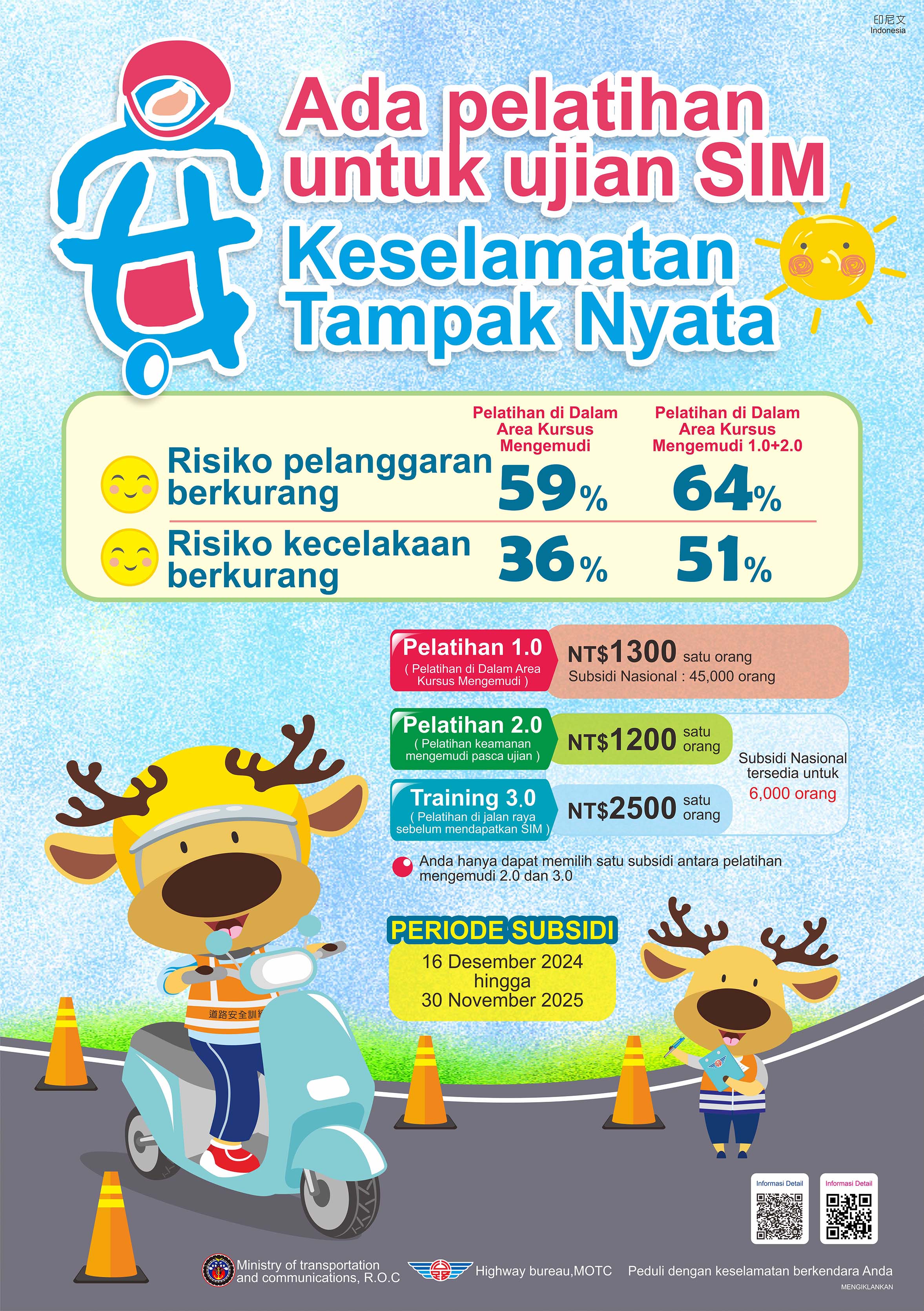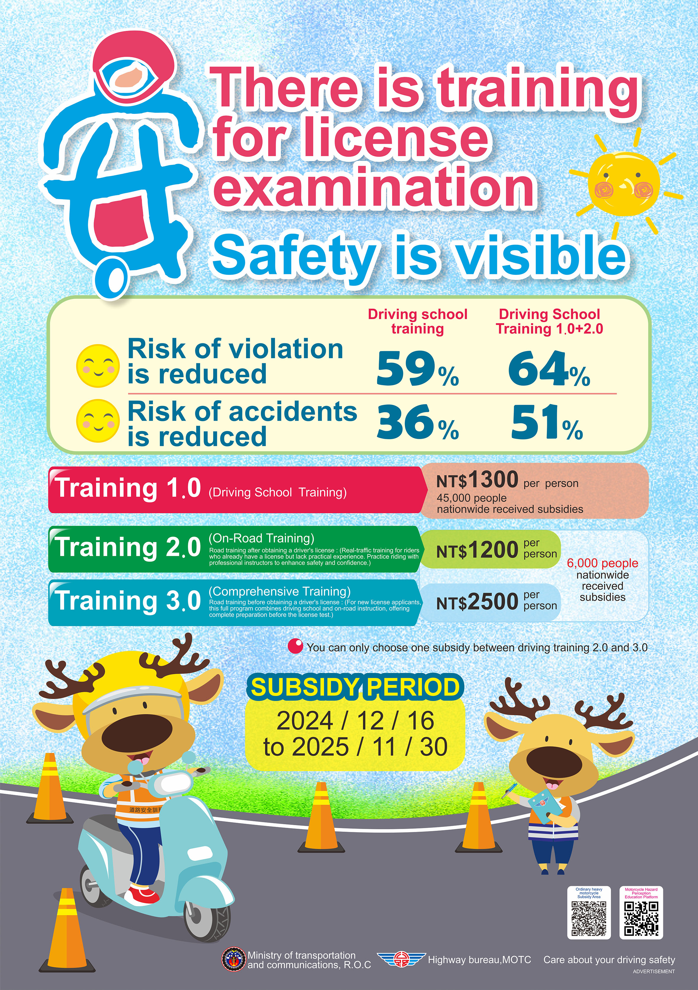 | 三、 | 另為強化高中學生機車安全駕駛觀念,如高中職校內具外籍生,請鼓勵其參加機車駕訓班,建立正確駕駛觀念與培養道路駕駛能力。 |