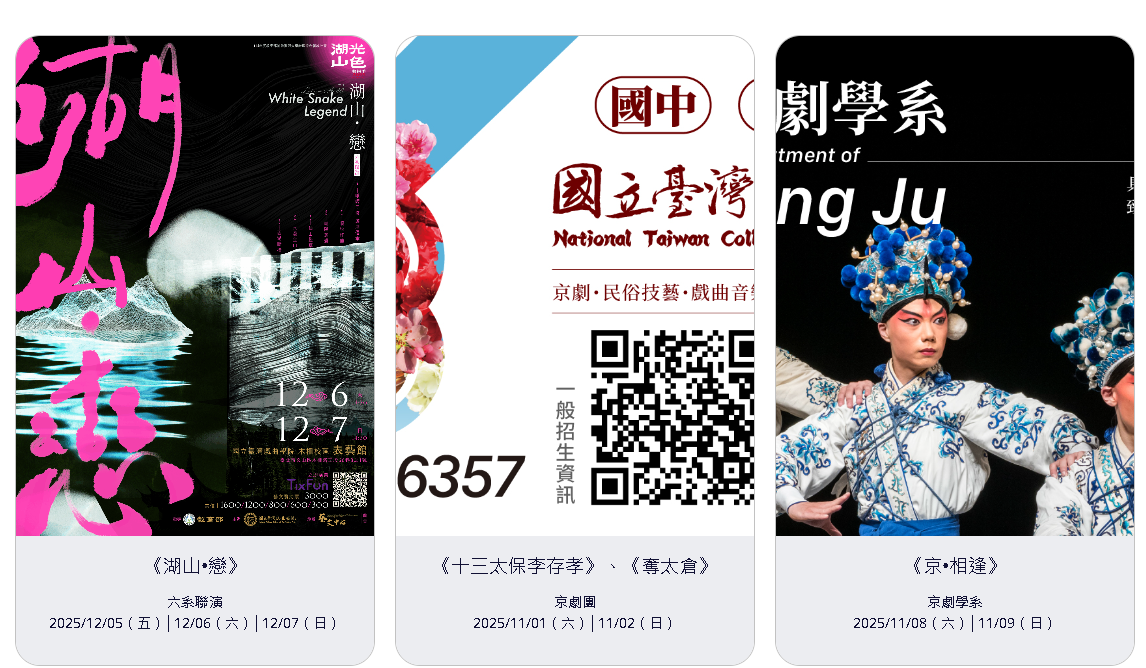 相關演出資訊 請查詢校網:https://www.tcpa.edu.tw/app/home.php .