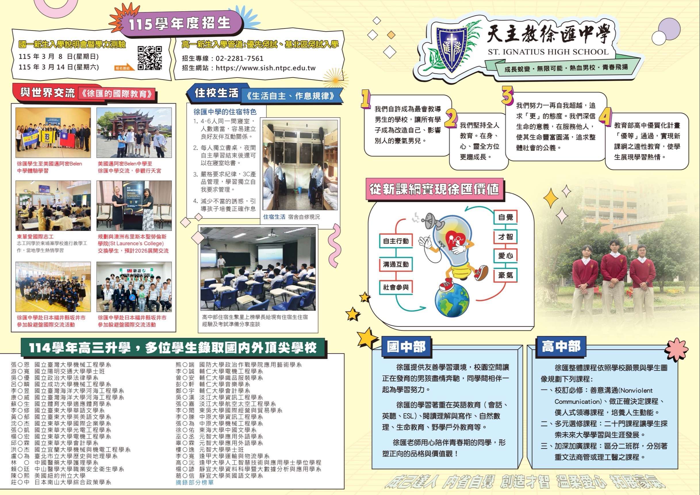 為協助家長與學生了解本校辦學特色及國中部課程規劃,特辦理 115 學年度國一新生說明會,相關資訊如下: