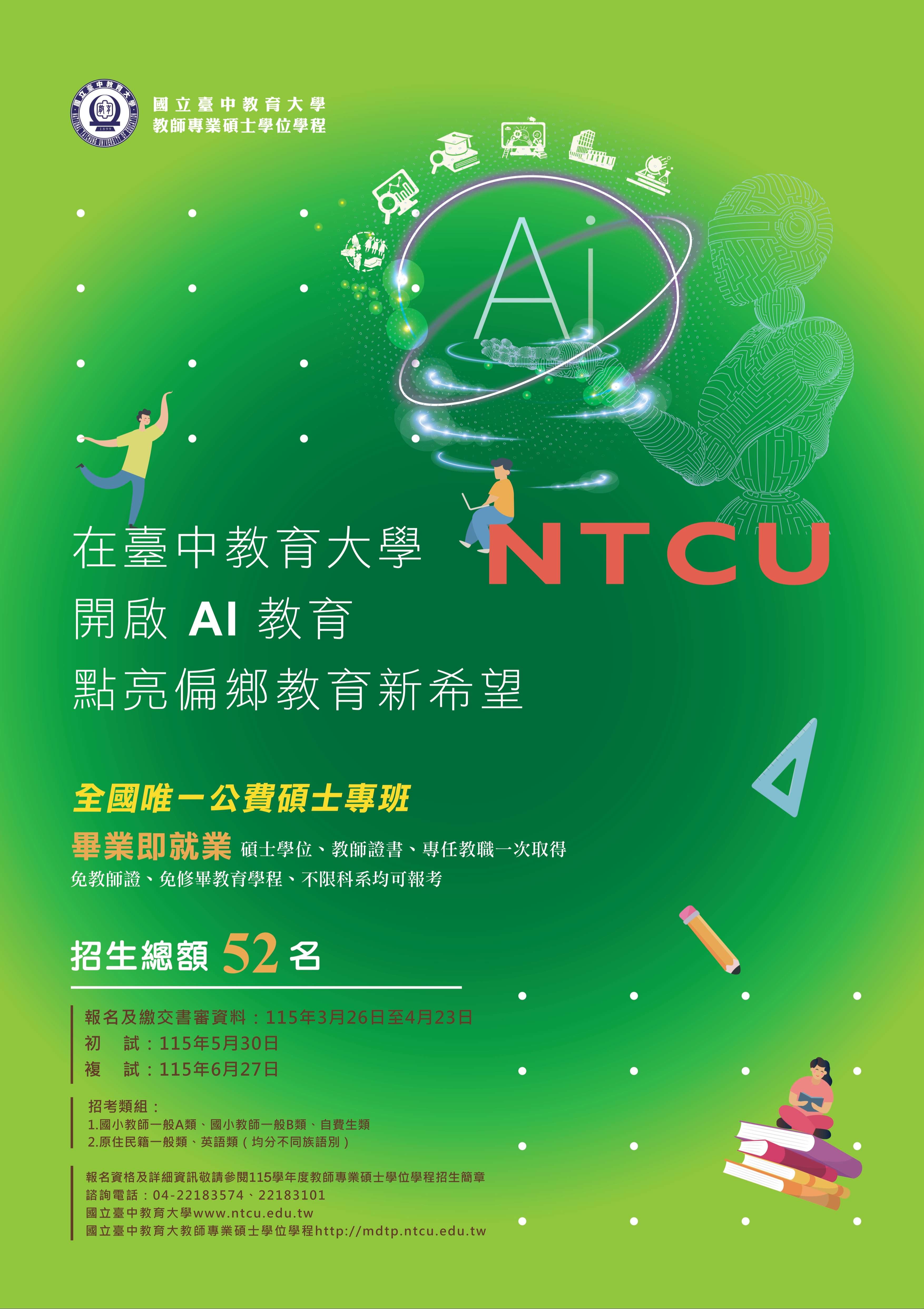 國立台中教育大學教師專業碩士學位學程115學年度招生
